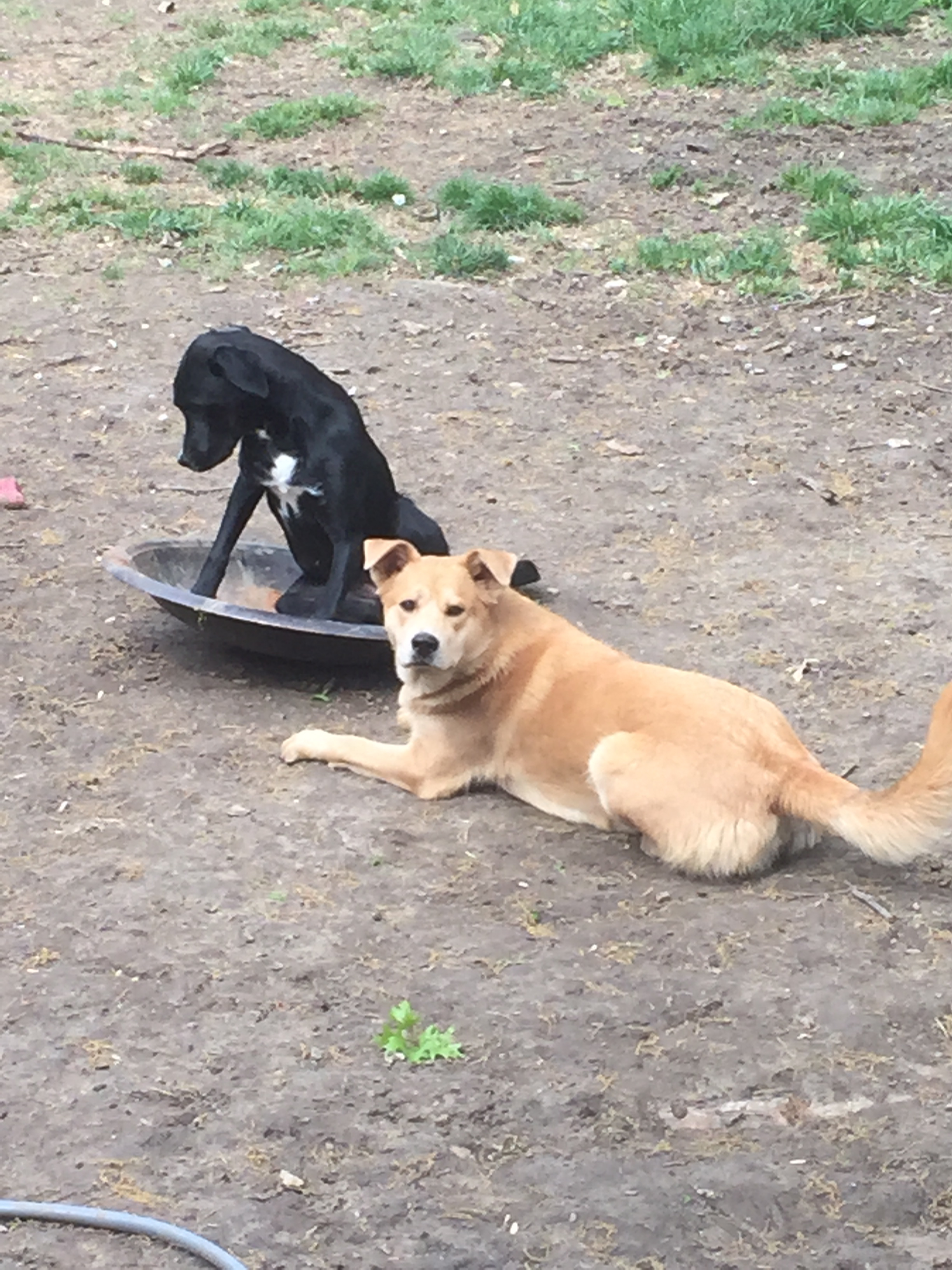 Finally, puppies. We bought a fire pit last year and it sat outside all winter long. The puppies found it recently and Grace has fallen in love with the basin. She pushes and pulls it around the yard, tries to flip it, and especially loves to sit in it. I’m not sure we’ll get to use it again as a fire pit.
