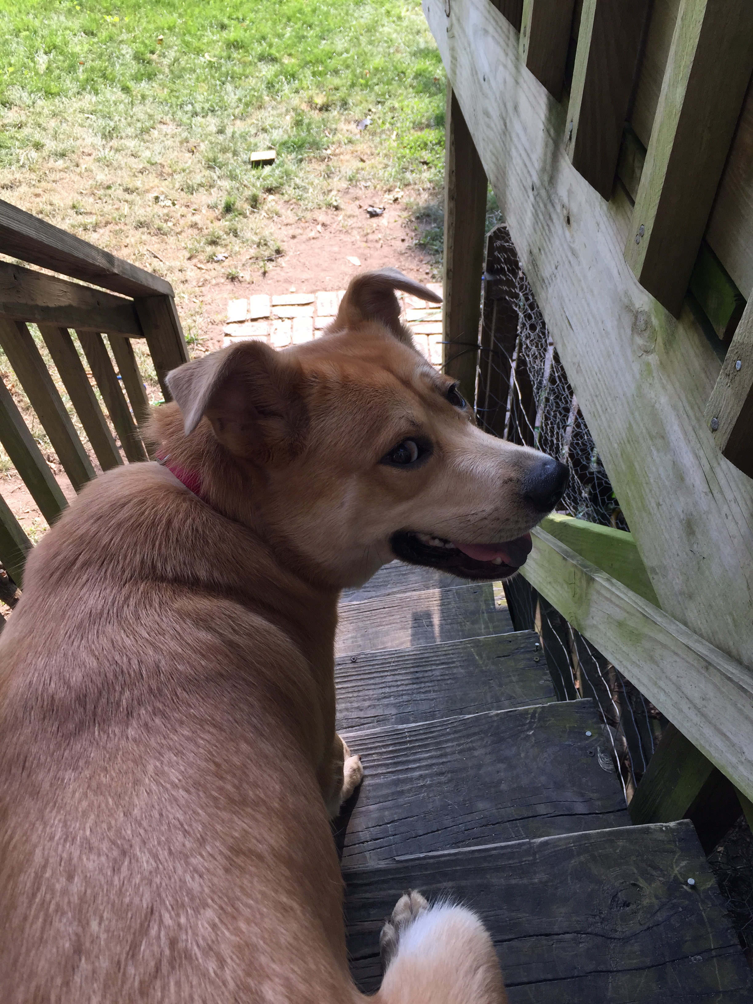 I let the puppies outside this morning by themselves while I went to fetch my tea, and when I came back, Jack was sitting right outside the door. He didn’t want in, though. He just wanted me to come out, because as soon as he could tell I was, he bounded down the stairs to frolic with Grace. After playtime, he came up to sit with me. He’s definitely a mama’s boy. IMG_3039 IMG_3040This weekend I get to visit with my sister and her kids while the husband packs up all his tools in the old garage, and then Sunday the husband and I are taking a day to ourselves to celebrate our 18th anniversary! Enjoy your weekend, readers!