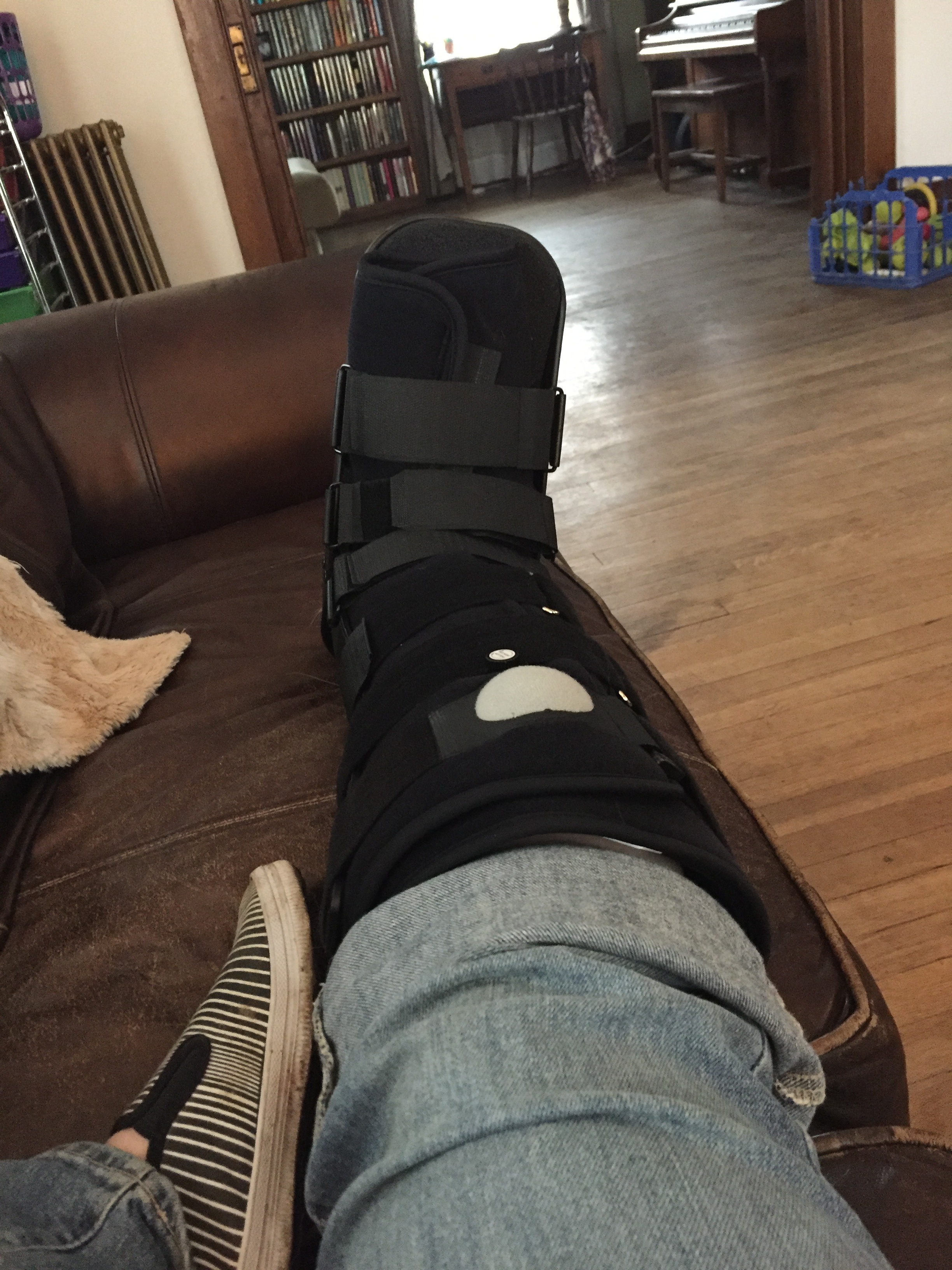 Last week was full of bad. Like, really bad, and lots of it. First was this: IMG_4014Wednesday morning I was coming downstairs to say goodbye to my daughter before she left for school, and somehow I completely missed the last step. I landed hard on my foot, heard it crack, and knew it was bad. She got me an ice pack and I sent her on to school. Then I managed to hobble to the dining room, where my phone was, to call my husband to take me to the ER. X-rays confirmed that I’d broken the 5th metatarsal, which is the bone that runs along the outer side of the foot. I was given pain meds, a boot, crutches, and instructions to put no weight on it.IMG_4015Thankfully, I hadn’t messed up the ankle or anything else. But still, it’s my right foot, which means no driving. As a SAHM with two active kids, that makes life difficult. My poor husband is now having to take on a lot of chauffeur duties, as well as errands like returning library books and going to the grocery store. Ugh.
