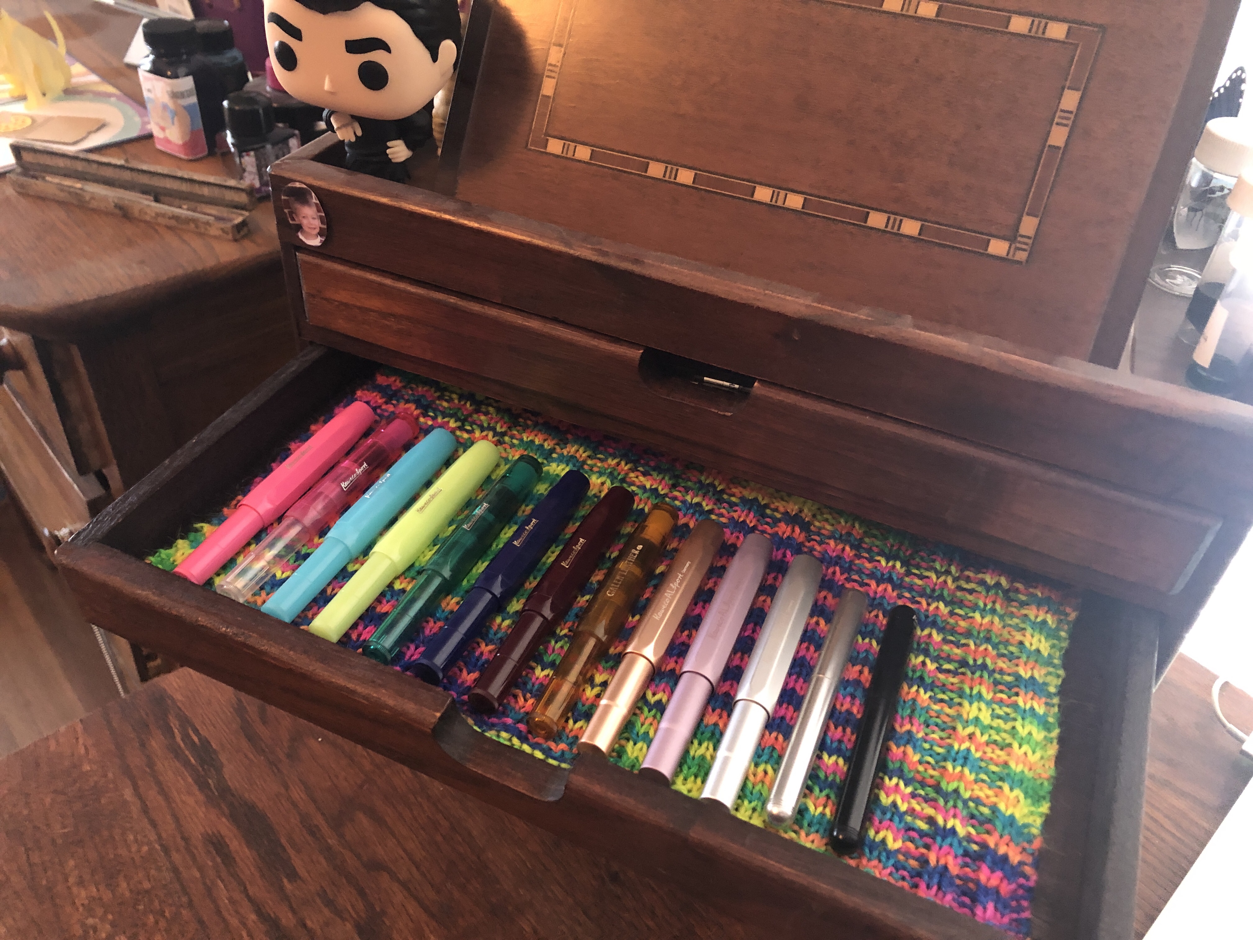 Now all the drawers are nicely lined and pulling them all out pointed out that I might have a pen problem.