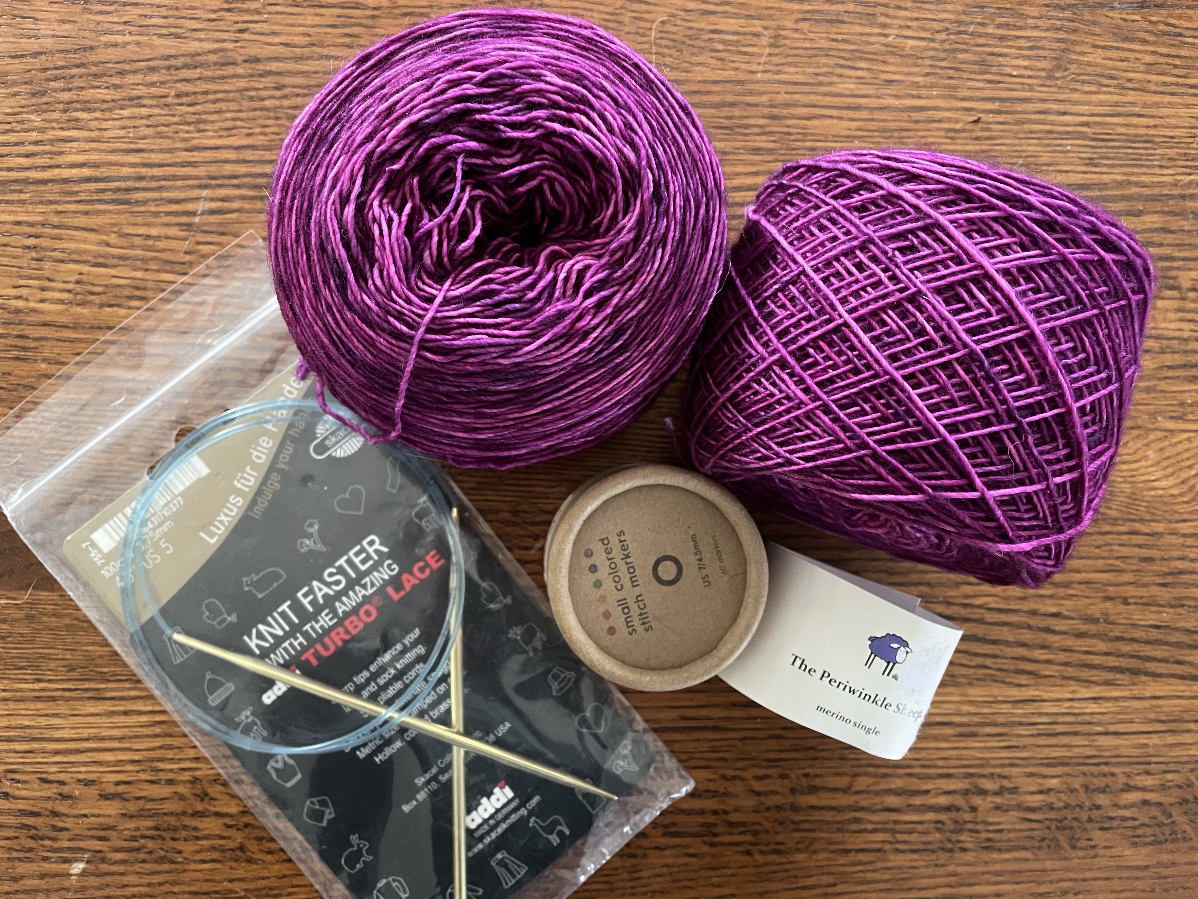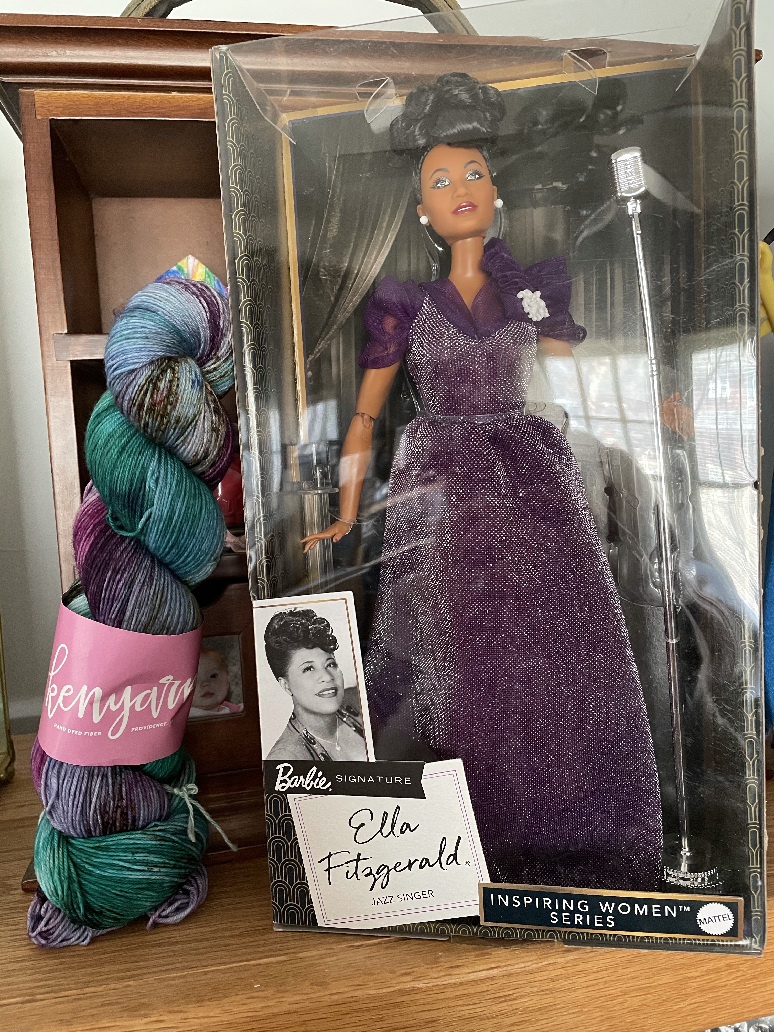 Now it is March and I carried over only two WIPs, a lace cowl and the gradient shawl. That means I can cast on all the new things, right? I have to have a sock on the needles and I don’t think I can resist my newest yarn, from Kenyarn and inspired by the Ella Fitzgerald Barbie doll. But I am also ready and eager to cast on the Water shawl (Rav link) for the Blogville KAL that Alissa is running. My yarn isn’t very water-ish but it is the only two matching skeins of fingering in my stash and there’s no way I was buying new yarn for this, especially since this gorgeous yarn (from The Periwinkle Sheep) was waiting for a project.