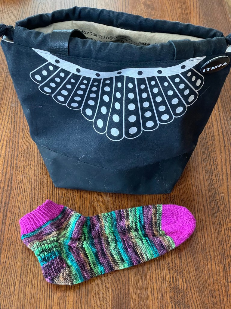 I do have a sock to share today, too. I started a pair of shortie socks last week with some leftovers and finished the first one yesterday. Short socks are so much fun to knit!