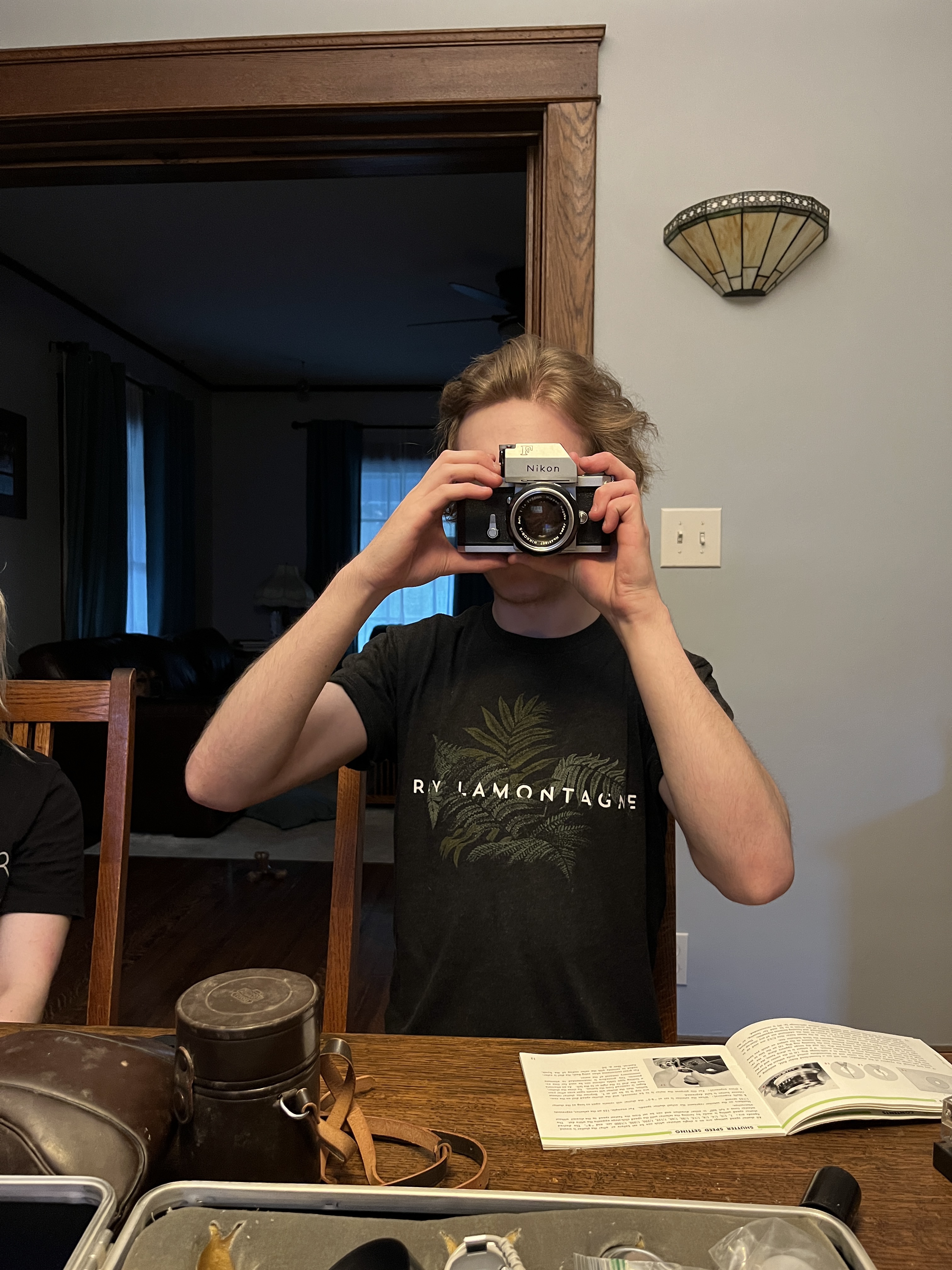 Many moons ago, when my dad was a teenager, he got interested in photography. He worked for his high school paper, both writing and taking photos, and somewhere in there he got a camera. It was a Nikon F Photomic, and he had multiple lenses and two flashes and a fancy leather carrying case, as well as the hard case to pack it all in. When he died, it all came home with me. I knew I’d never actually use it, but I do like photography and I liked having that little connection.