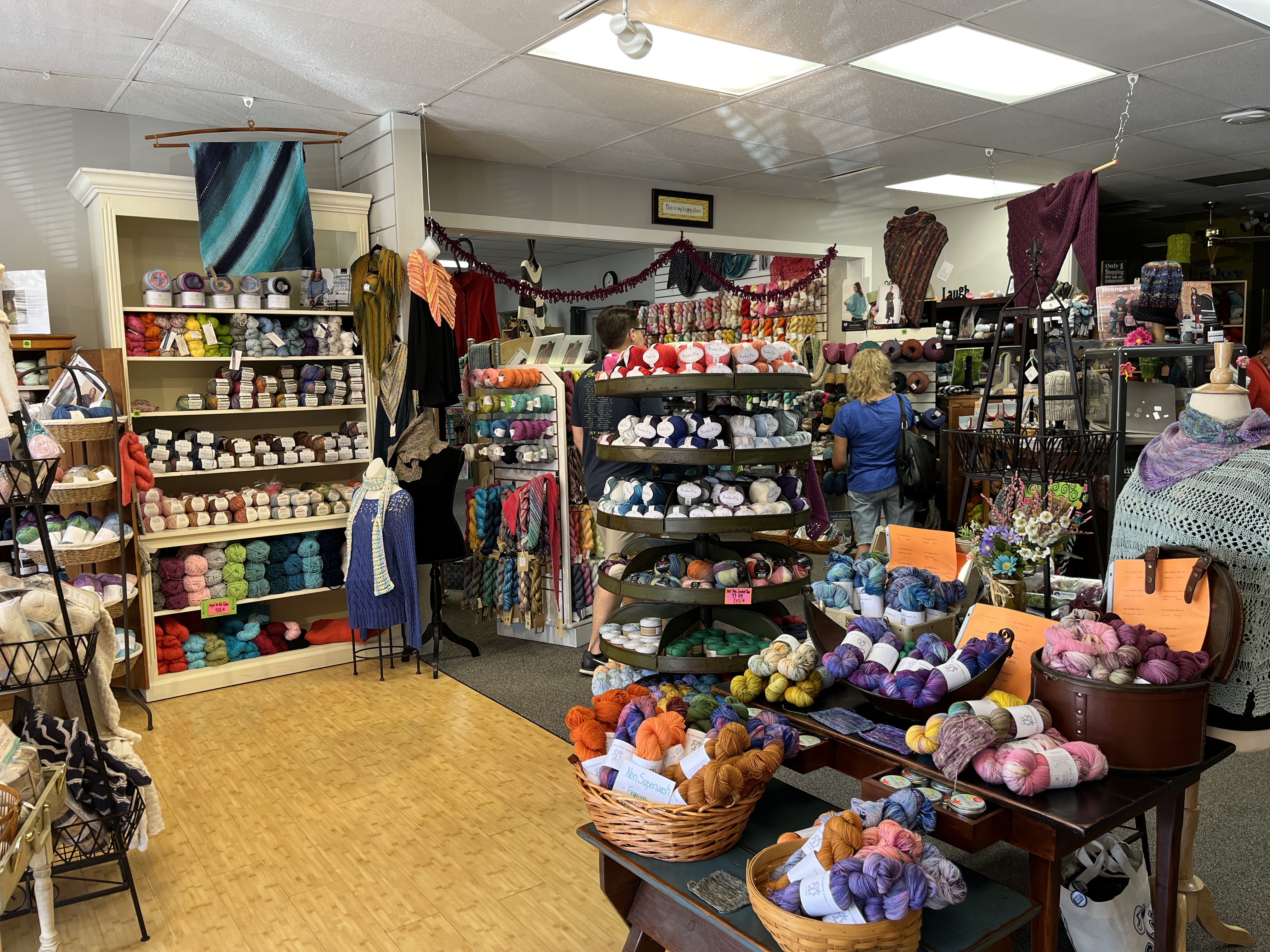 Also in Omaha was Imagiknit, and that was a delightful store too. She had Emma’s Yarn plus other indie dyers plus some good bigger names too. It was a charming shop with great variety and fun little extras. I did go to one other store in Omaha but the vibes were off at that one. They had a lot of Koigu, Malabrigo, Madelinetosh, and Noro, and not much else. It was on the second floor of an art gallery, just tucked away on one side. It felt…strange. It felt like someone had decided to jump on the “knitting is trendy” bandwagon without really knowing the community. Anyway, I did find two skeins there but it didn’t inspire me so I didn’t take any photos.