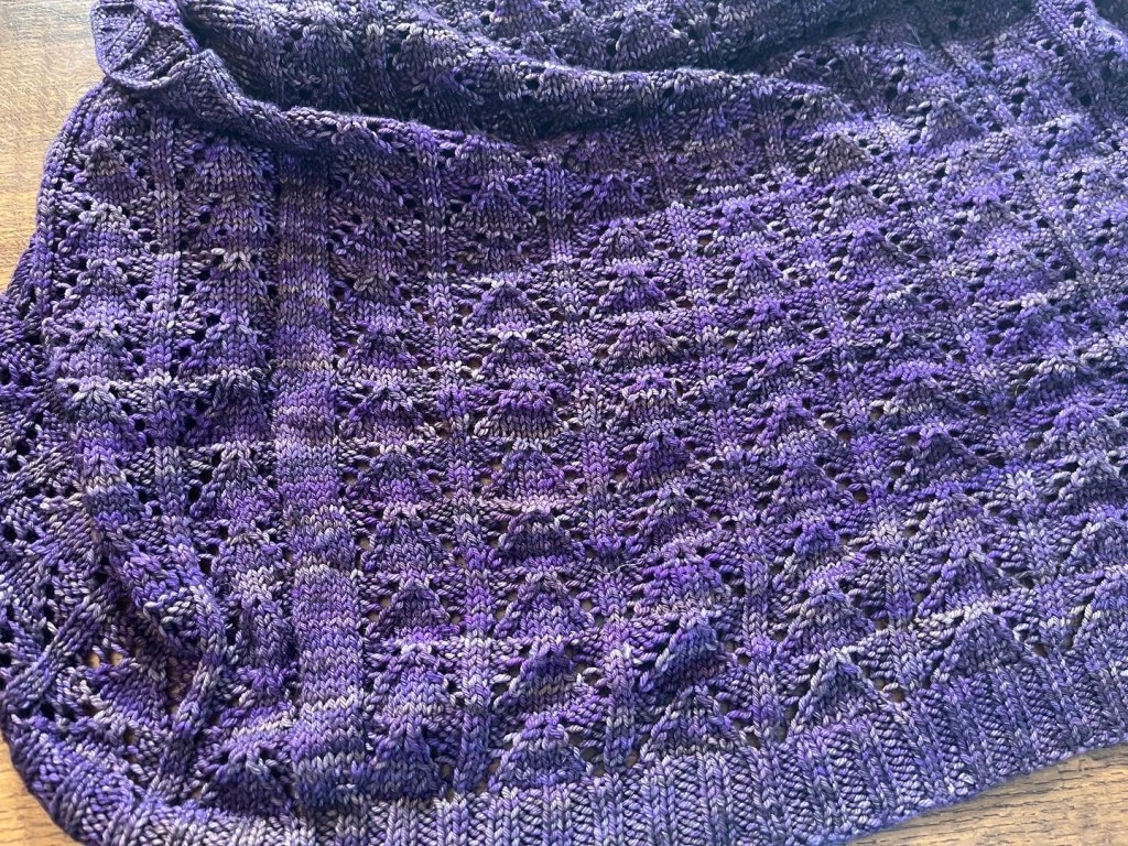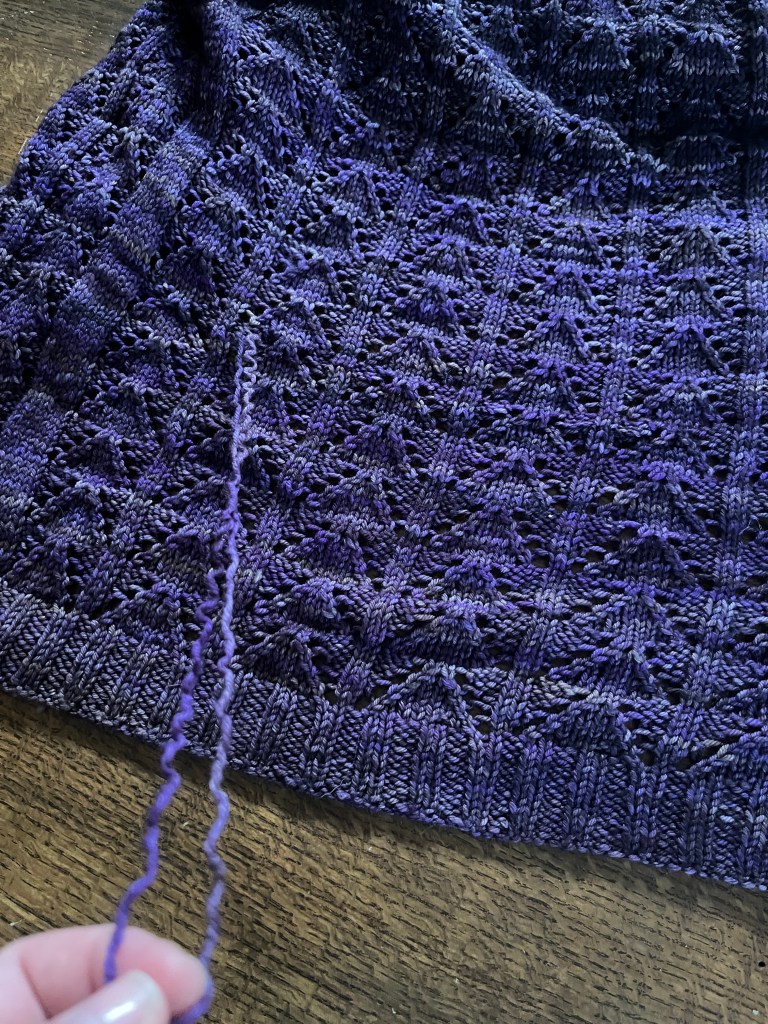 Or rather a snag hit me. I wore my new sweater to work yesterday and when I got home, the dogs were so excited to see me that they were jumping and of course a claw hooked into my sweater and pulled out a loooooooong snag. I’ve stretched it out as best I can but there’s still plenty left. I guess now I sit with my trusty Ott light and start working it back in.