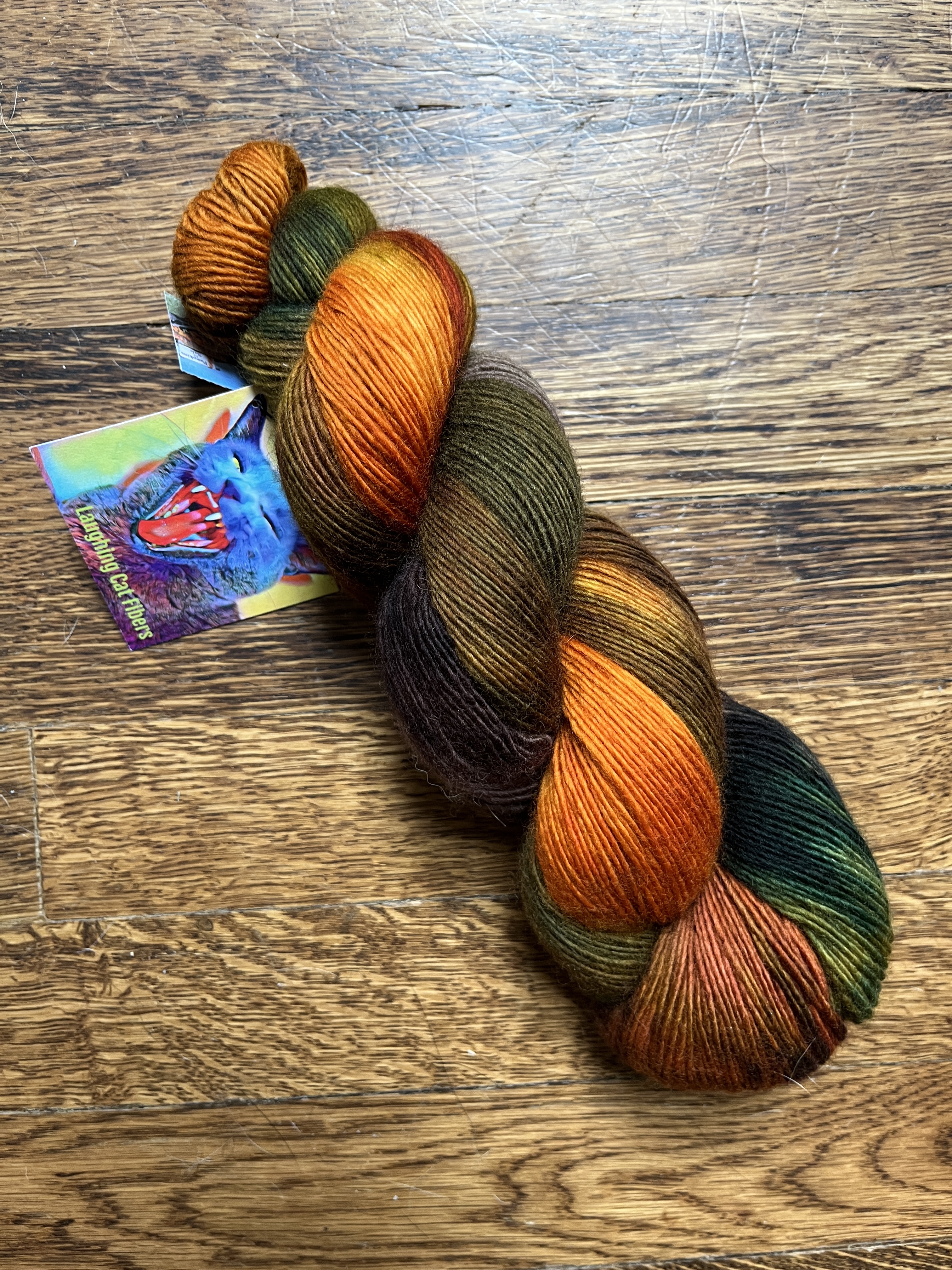 Guys, LOOK at that yarn! It’s stunning. I’m not usually a big fan of orange but for some reason I find this skein absolutely gorgeous. It’s dyed by Laughing Cat Fibers and it’s non-superwash, which sometimes I find not quite as soft but not this time. This feels so good and I’m already so inspired to cast on a little shawl that the yarn is already wound! I’ve chosen a pattern called Autumn Falling, which is free on Rav, and yes I will be casting on as soon as this blog post is done.