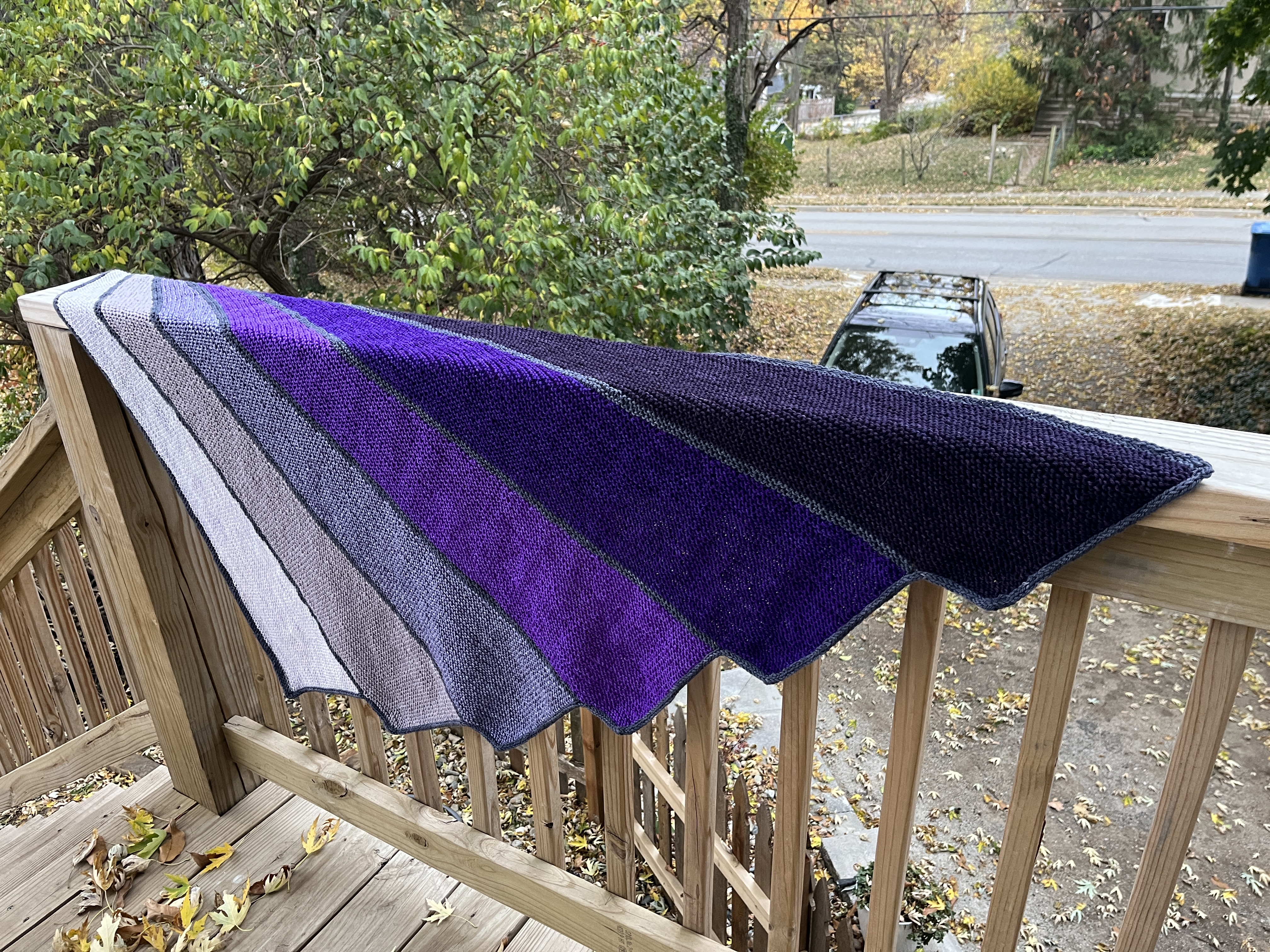 I swear, I cannot recommend this pattern enough. I’m already thinking about how I could do one in fingering weight with all my sparkly purple yarns, with a simple neutral in between! If you’re interested, here are the yarns I used and how much of each one. You’d think all the purples would be the same yardage used but somehow that wasn’t the case.