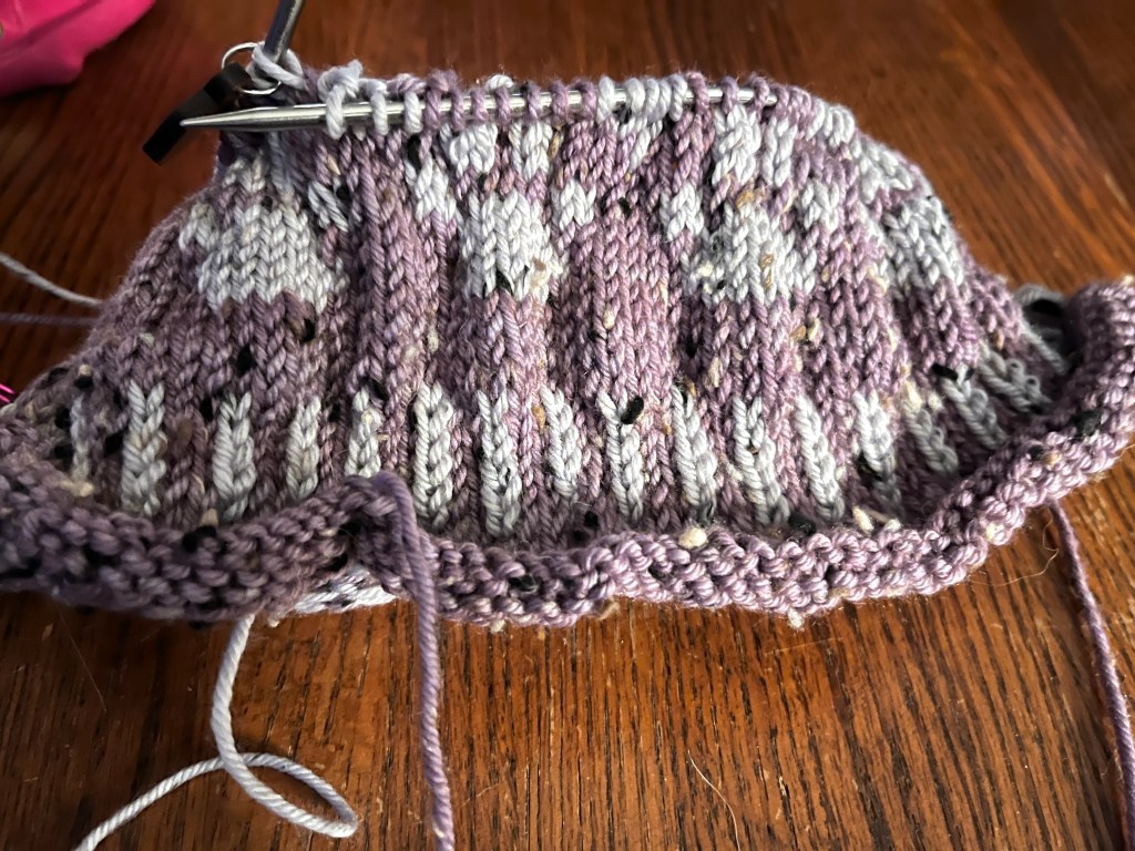While I’d like to think that sh*t will block out, I don’t think that sh*t will block out. SO. Color work is in timeout for now. I just wanted a darn paw print cowl, that’s all! Is that really too much to ask? I *might* frog this and start over with the charted section, catching my floats more often. We’ll see.