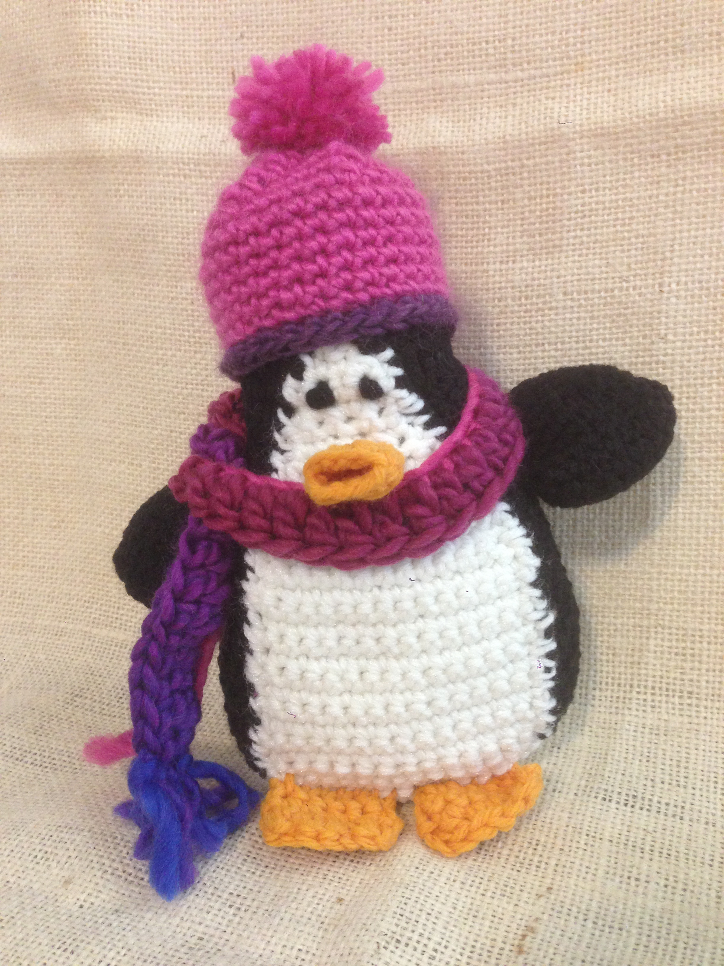 I also finished my most recent travel-knitting project. I had a simple seed stitch slouchy beanie going for when I have to sit and wait somewhere, and I thought it would never be done. Yesterday I got close enough that I decided to finish it off at home. I used the Pompon and Seeds Hat pattern, which has been in my library for ages, and some black and gold Red Heart Fiesta yarn. I think an MU hat will be a hit at my next craft show! If I’d had some solid gold yarn, it would have a pompom.IMG_3182 IMG_3184Finally, I thought I’d share my little penguin friend. A week or so ago my daughter was a little stressed out from all her activities, so I pulled out a crocheted penguin I’d made last year. I made him a hat and scarf and left him on her bed. She was delighted when she found him and named him Franklin. I’d make more…except I didn’t really like making him! Maybe I’ll look for a knit penguin pattern.IMG_5365Thankfully, she has survived the marching band season and the fall musical. She’s sad to see them end, but we’re all breathing easier to see our schedule open up a little bit. She was a wonderful nun in The Sound of Music, AND this weekend she auditioned for the All-District Band and earned the 9th chair in flute! That means she gets to move on and audition for All-State! Plus, she found out yesterday that she received the highest score on their school chair placement tests. As a freshman, she is the first chair flute at her school! Can you tell I’m a little proud?