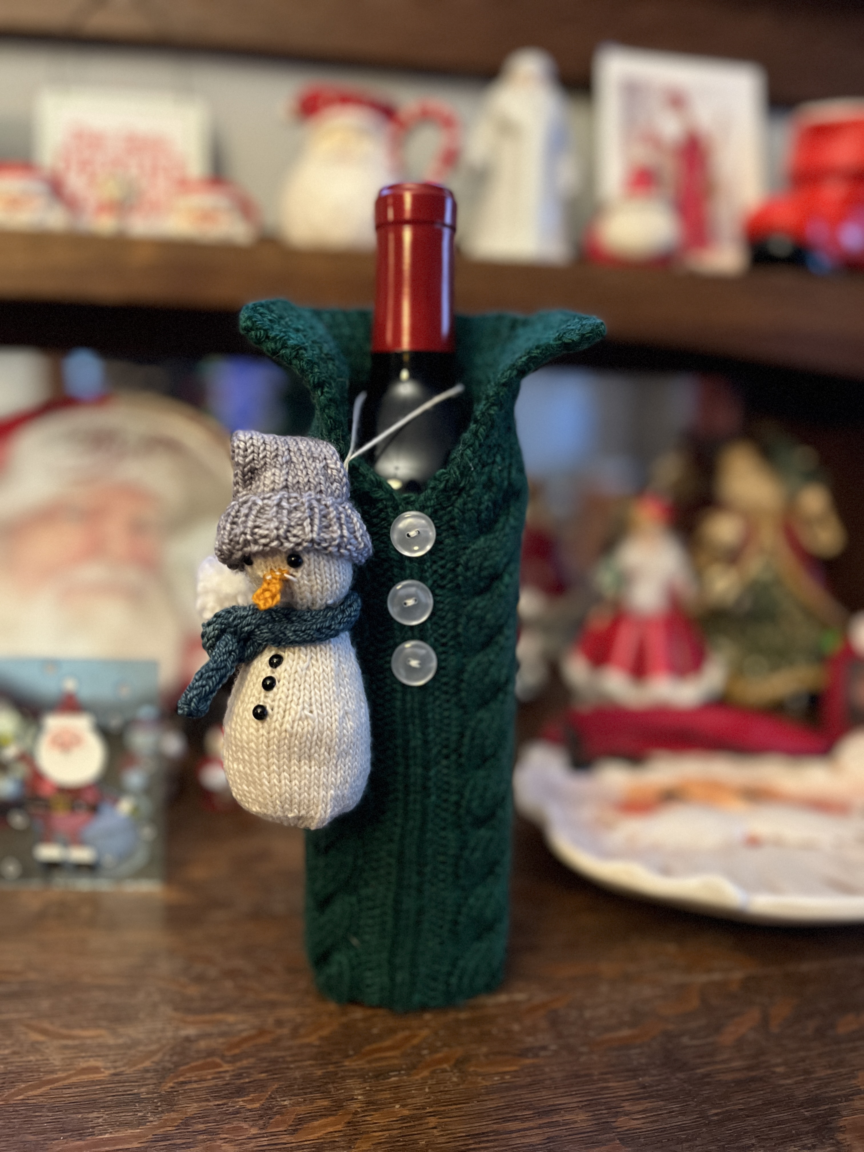 I wrapped it in a wine gift bag and it got ignored until very late in the game but as soon as it was opened, it was immediately stolen twice (which was our limit). I think it’s okay to say that it was one of the better gifts, which included things like a used/not completely clean sandwich press, a russet potato, and a plastic spaghettio’s bank. I came home with a holiday apron/oven mitt set, a bag of trail mix, a box of sugar free/fat free vanilla pudding mix, and, best of all, a tall glass jar that is the perfect thing to store straight knitting needles!