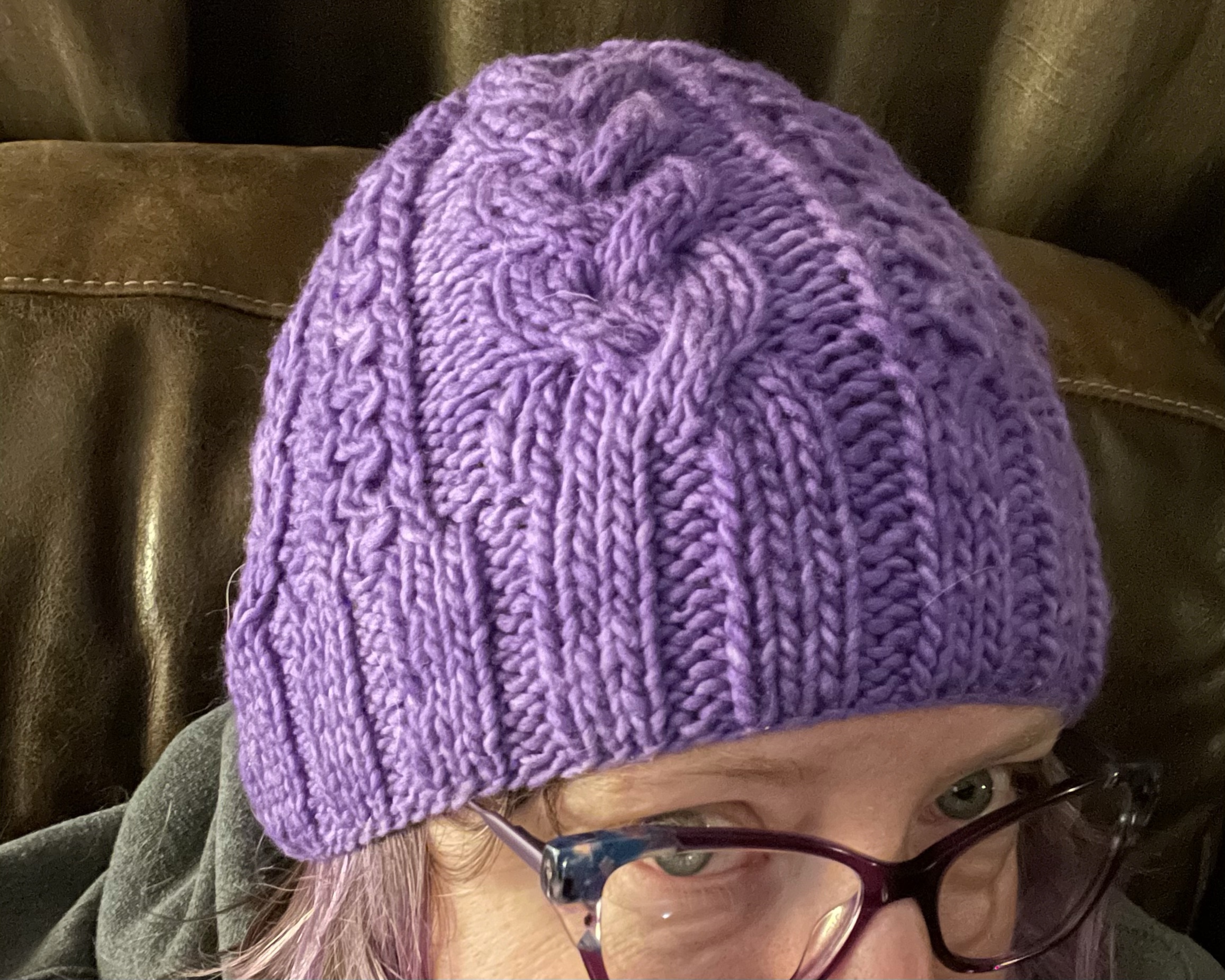 I did mess up two of the cables early on, but there was no way I was going to frog back to fix them. And it worked out well because the folded brim hides the worst of it. I’m still not sure I love the cabling process but I do adore finished cables, and it makes it worth it, at least for smaller projects. I don’t know that I’d want to do a cabled sweater yet.