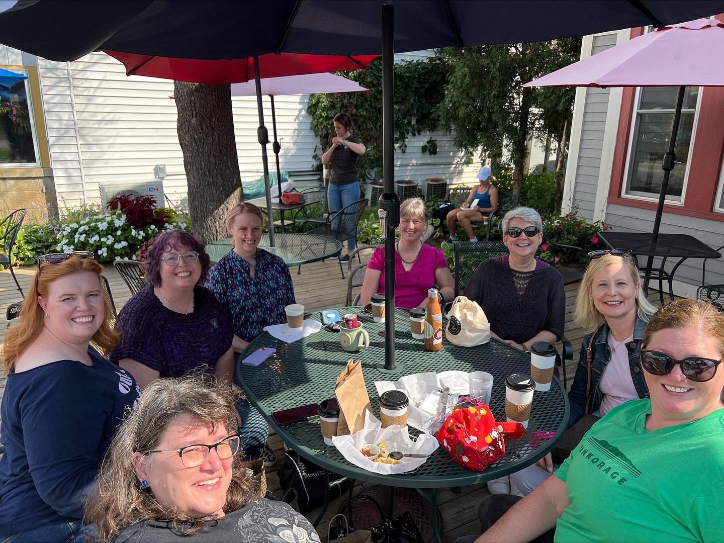 There were eight of us who convened in Wisconsin, partly for the Wisconsin Sheep & Wool Festival but also partly just to be together. There were two I’d never met in person who I love even more now, and the others I was delighted to see again. We had one big AirBnB so we spent a lot of time hanging out knitting, but we split into smaller groups for different excursions. It was just GOOD to be together. They even put together a little birthday party for me one night, with cupcakes and the most thoughtful gifts. I’m a lucky lucky girl.
