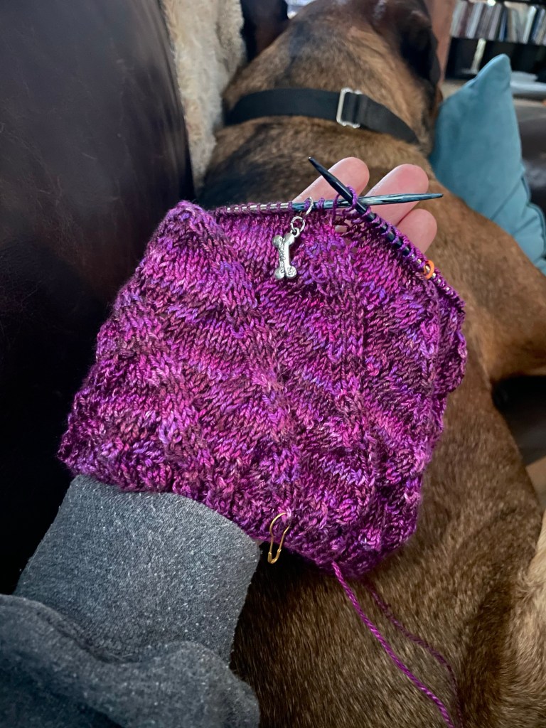 What did I do with my busy busy day yesterday? Well, not knit, that’s for sure! Nope, I spent the day with my MIL, aka my favorite hairdresser, and emerged with a new hairdo! I thought about waiting to post until I could get a “better” photo, i.e. one with makeup and a nicer shirt and a better background, and then I thought, nah. This is me. This is what I look like on a regular basis. It is what it is. So without further ado, voila: IMG_5803If you’re wondering WHY the heck I would dye my hair purple, read this post from a couple of years ago. I loved my purple hair, truly. The only reason I went back to “normal” hair is that I was going on a big vacation to Washington D.C. with my mom and kids, and either I wasn’t sure I wanted to do that with purple hair, or I knew my mother would rather I not have purple hair in those photos. Not sure. In any case, I missed my pretty hair and decided to do it again and this time it will stick around indefinitely. It makes me happy.