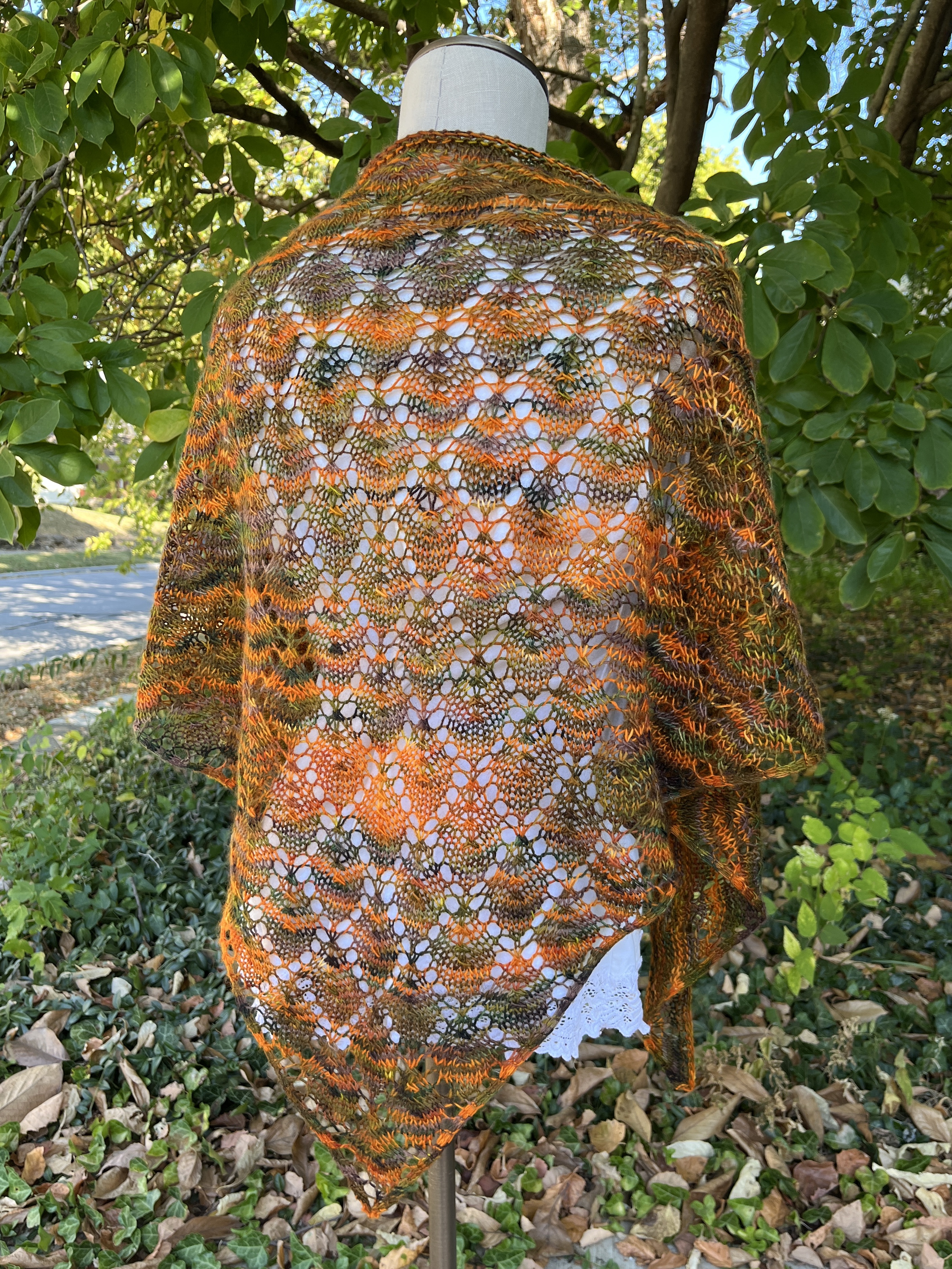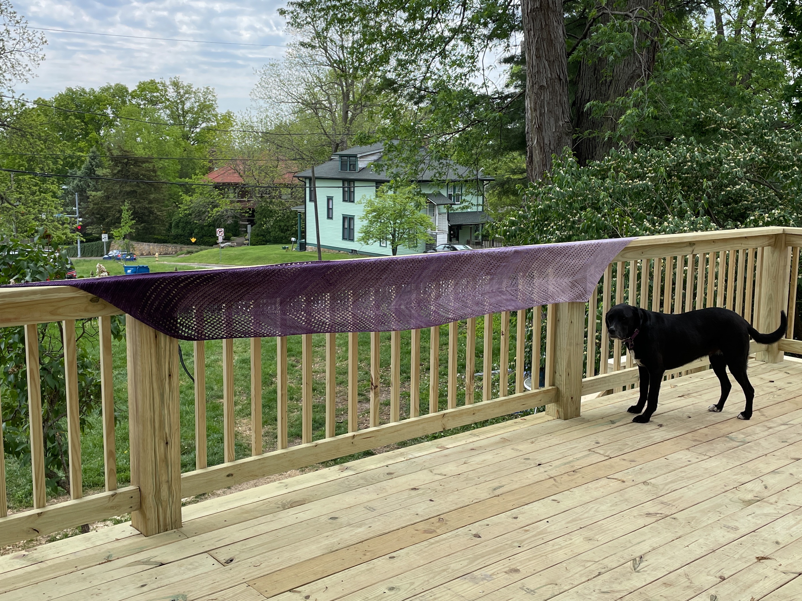 I snuck out into the chilly morning to be that weird neighbor taking photos of knitwear outside because a FO is never truly finished until I have taken the beauty shots! After buying all that yarn on my road trip, I realized it threw my In/Out yarn count out of whack – I was suddenly at 21 skeins added to my stash versus 18 used up. That was not acceptable, not after such a good start to the year! I immediately got to work finishing a shawl WIP that used up three skeins of yarn. This is the Jodi shawl by Joji Locatelli (Rav link) with the yarn from New Garden Farm I bought recently. I love how it came out!