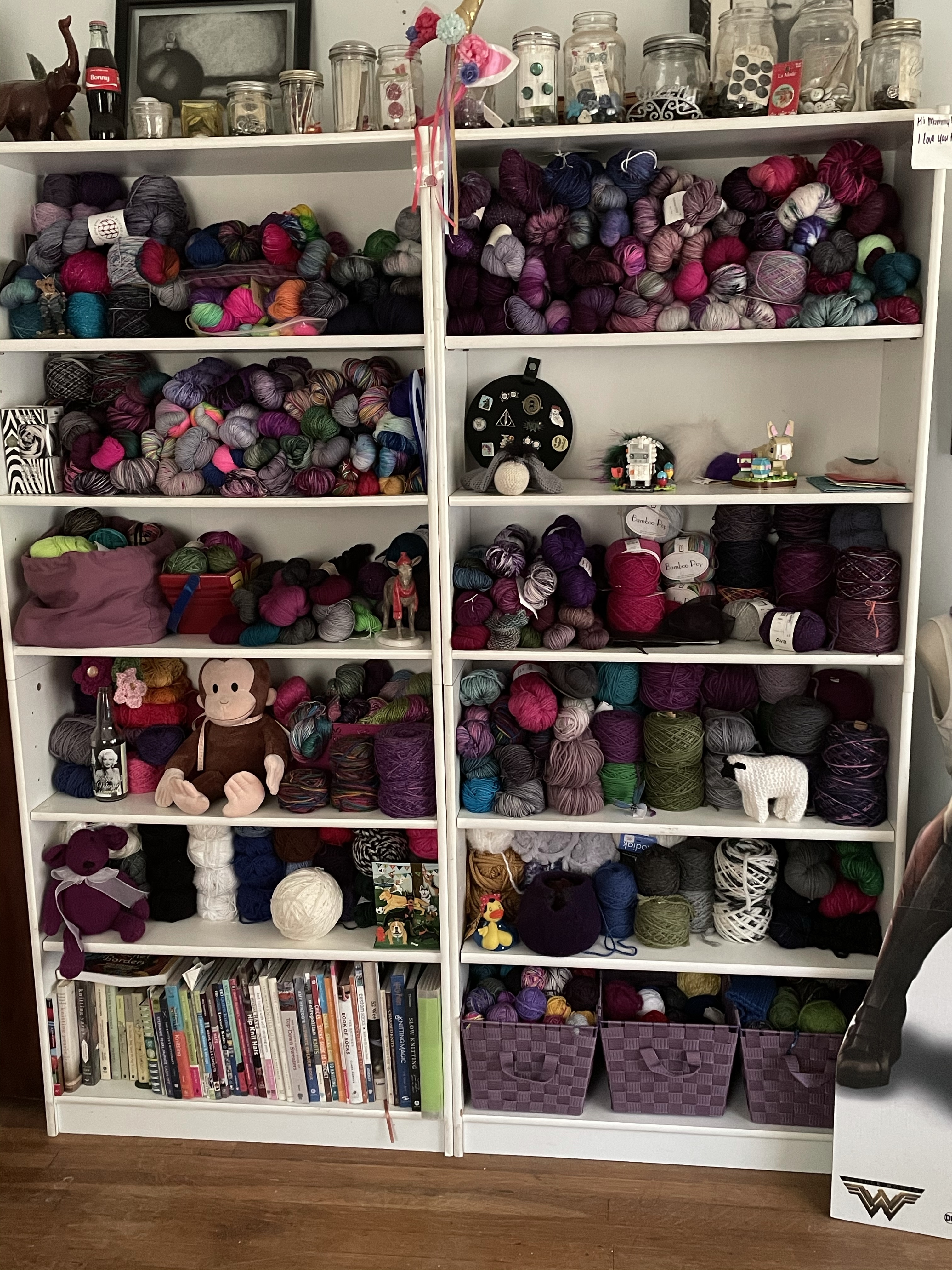 Also, that yarn?? Omg. It’s Old Rusted Chair Squish DK in Bijou (purple), Offworld (speckle), and Ridin’ the Storm Out (charcoal) and it’s SO yummy to knit. This week I’ve also had something of an epiphany. I would like to read more, and I would like to not get bored knitting stockinette sweaters. Enter Libby, the library app on my iPad! I can easily and happily read while I knit simple and boring stockinette! This might be a game changer for me. I’ve already read four books this year (one was a re-read but still counts, right?) and have made so much progress on my sweater. I don’t think I’ll finish it before I go back to work next week, but I can get awfully close.